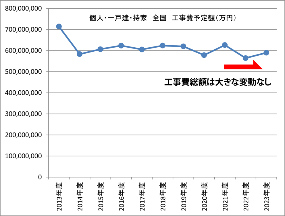 個人・一戸建・持ち家 全国 工事費予定額(円)