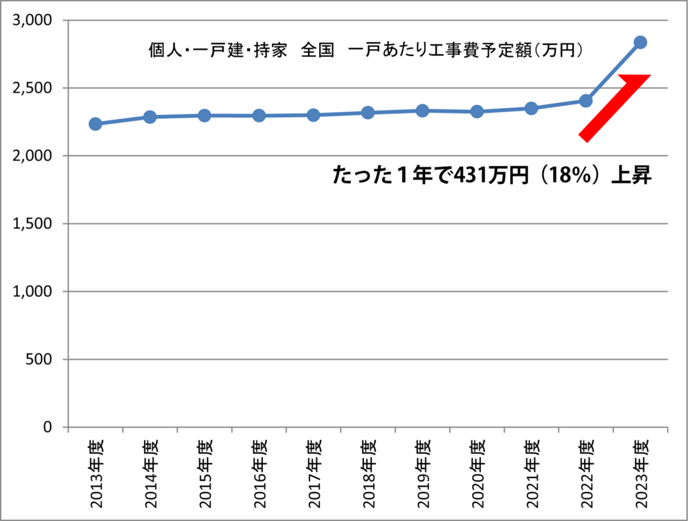 個人・一戸建・持ち家 全国 一戸当たりの工事費予定額(万円)
