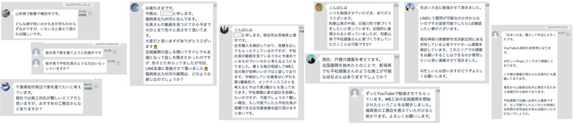 Youtubeのチャンネル登録者数が10万人を超えると、全国から家を建ててほしいというメッセージは月間100件以上となり、全て対応できないため心苦しい状況が続いています。 対応できるのは、地元浜松市のわずか0.6%の方々で、残りの99.4%はお断りしているのが現状です。
