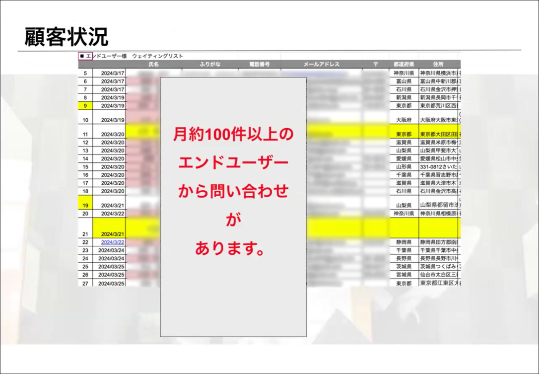 現在13.5万人となり、毎月100件以上の問合せが入っております。
